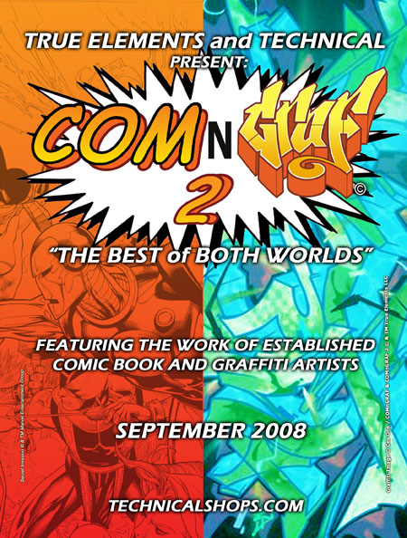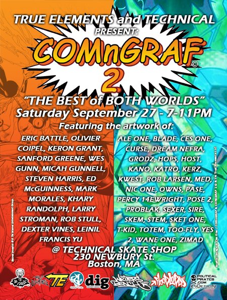 And to get a sampling of the new season of Chaotic, which looks dramatically different from the last season, also check out 4kids.tv.Lastly, I had the honor of being asked to be a part of a gallery showing coming up in my hometown of Boston. My good friend (and mentor) Rob Stull is putting it all together and it should be pretty ill. It's called COMnGRAF, and basically it's a show that brings together the worlds of comics and graffiti all in one art exhibit. Some of the artists in the show are amazing, seriously. I was really flattered to be asked to be a part of it. There was one show back in July that went over pretty well and this one promises to be even bigger. It's on Saturday, September 27th and it'll be at Technical skate shop on Newbury St. I won't be able to be there personally (gotta wedding to hit that same weekend) but I'll have some art pieces in it and also there will be Black Books for sale. All the information can be found on the flyers below. If you happen to live in Boston, also pick up a copy of the local newspaper (I believe it's called the Daily Dig) the Wednesday before the show. I, along with a few other artists was interviewed for a piece about the show. Peace.