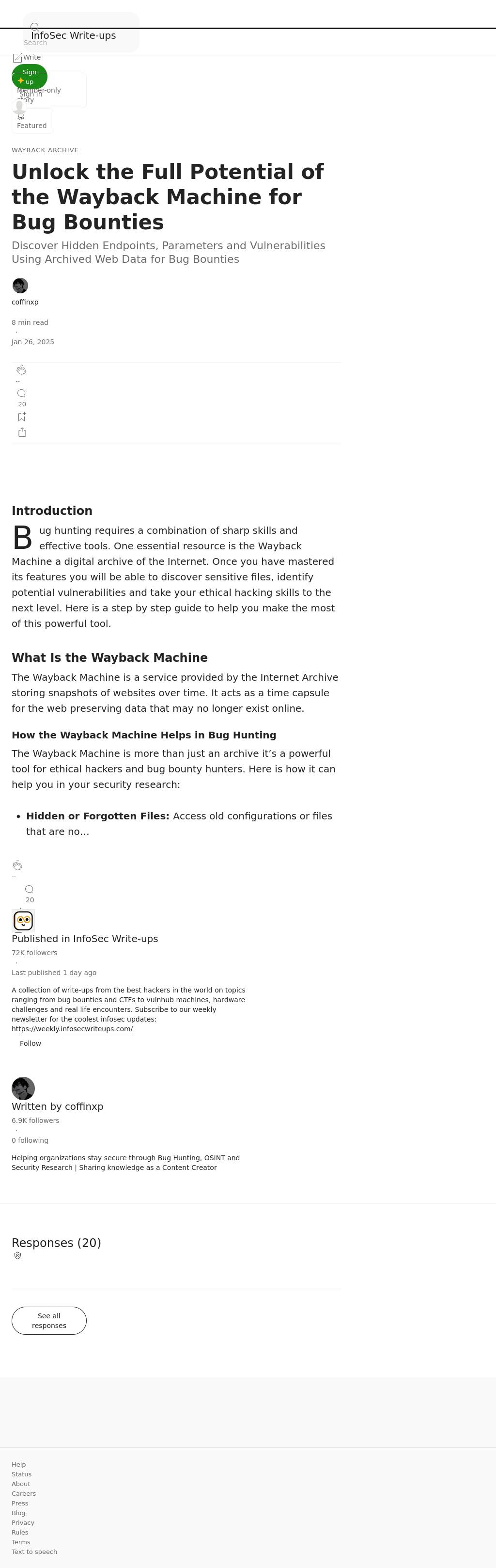 https://infosecwriteups.com/unlock-the-full-potential-of-the-wayback-machine-for-bug-bounty-8b6f57e2637d