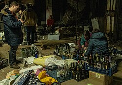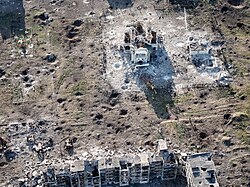 By 18 March, Mariupol was encircled and fighting had reached the city centre, hampering efforts to evacuate civilians.[168] The Russians demanded surrender, and the Ukrainians refused.[169] On 27 March, Ukrainian deputy prime minister Olha Stefanishyna said that "(m)ore than 85 percent of the whole town is destroyed."[170] Russia refused safe passage into Mariupol to 50 buses sent by the UN to evacuate civilians.[171][172]