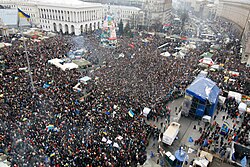 In November, Ukrainian president Viktor Yanukovych suddenly withdrew from signing the agreement,[41] choosing closer ties to Russia instead. This coerced withdrawal sparked massive protests known as Euromaidan, culminating in the Revolution of Dignity in February 2014. Almost 100 protesters were killed by state forces, most of them shot by police snipers. Despite signing an agreement, Yanukovych secretly fled. Ukraine's parliament then voted to remove him and hold new elections.[42]
