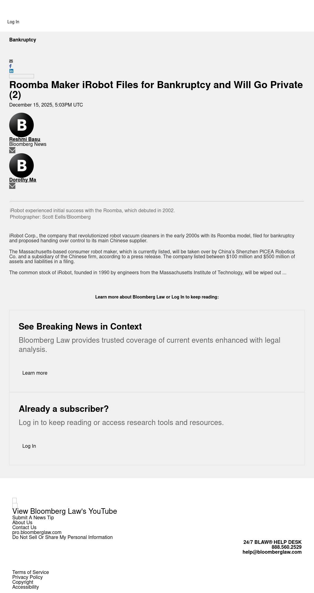 https://news.bloomberglaw.com/bankruptcy-law/robot-vacuum-roomba-maker-files-for-bankruptcy-after-35-years