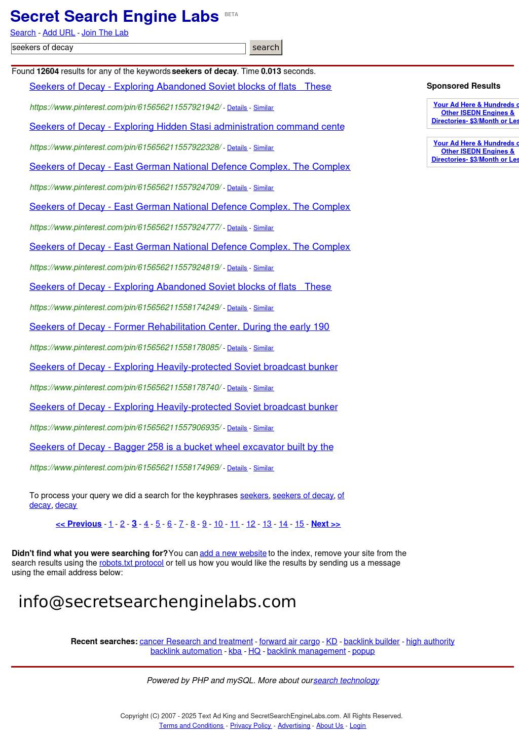 http://www.secretsearchenginelabs.com/findmore/seekers%20of%20decay?start=20